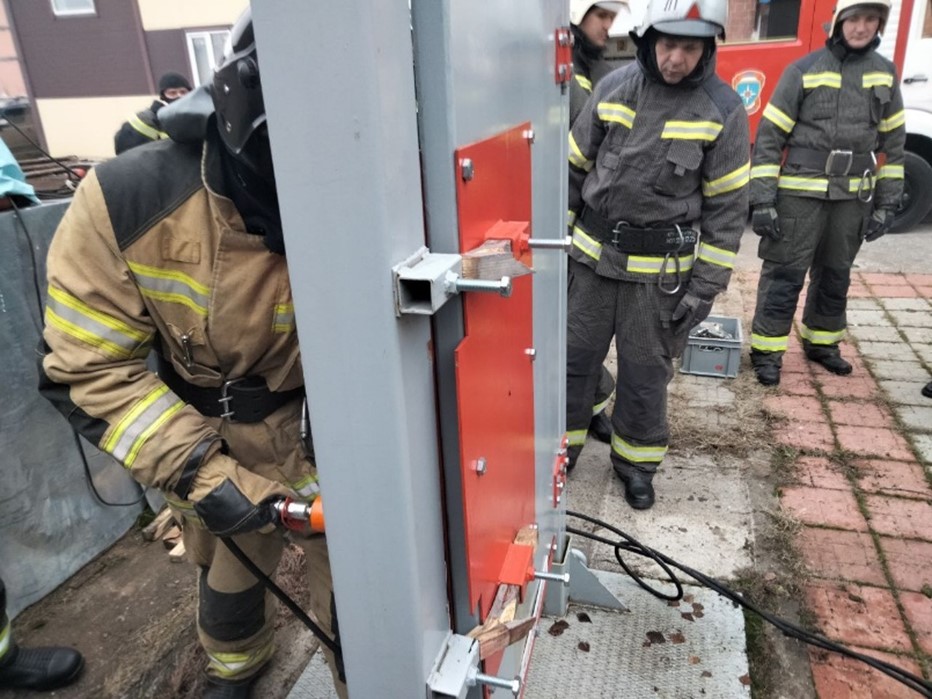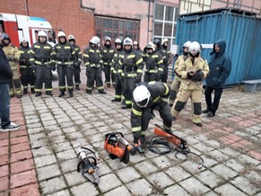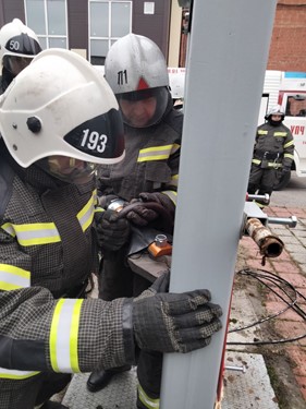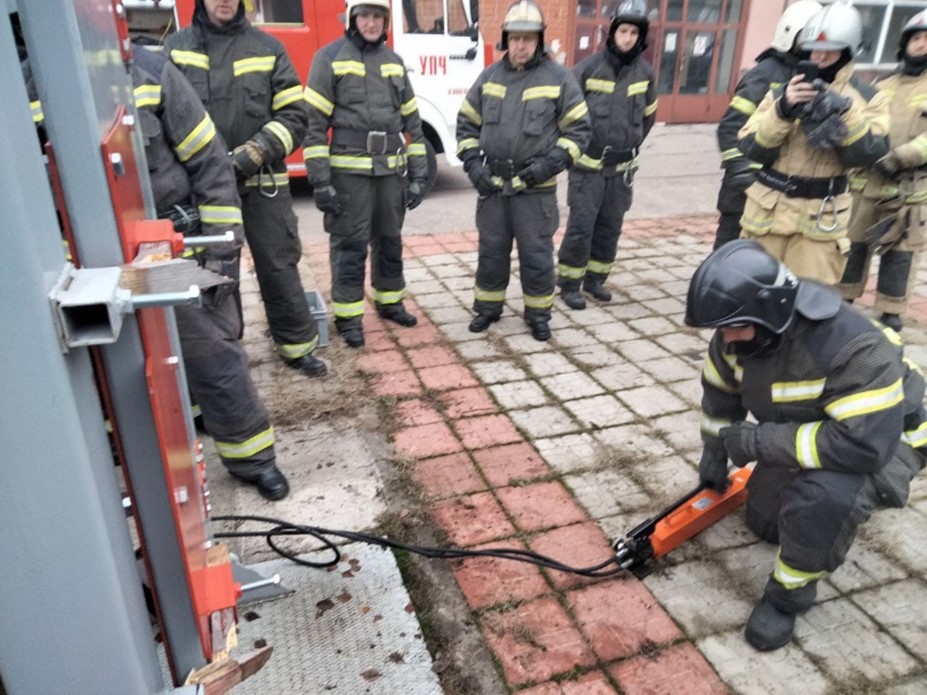 На макетах автомобилей и специальном учебно-тренировочном тренажере отработали практические навыки безопасного применения ГАСИ. Выполнялись упражнения по расширению и распору автомобильного кузова, перекусыванию стальных прутков, вскрытию металлической двери с соблюдением техники безопасности.